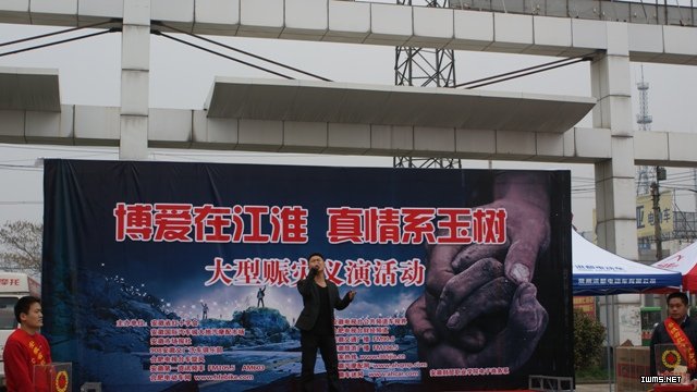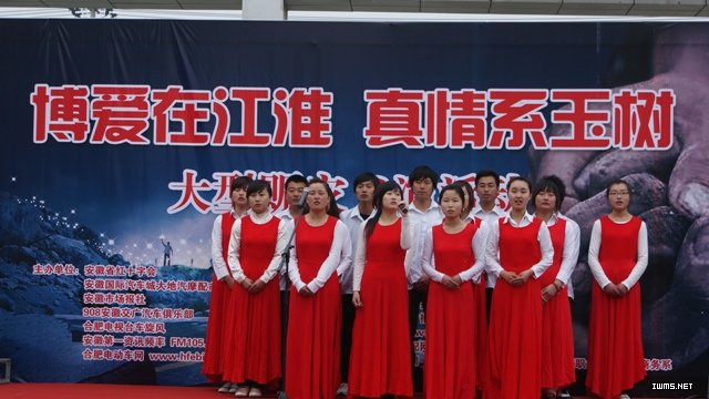 4月18日上午,由安徽省红十字会和安徽交广908俱乐部等单位主办的“博爱在江淮,真情系玉树”的大型赈灾义演活动在安徽国际汽车城举行。我院电子商务系组织20多名志愿者和三个义演节目参加活动。