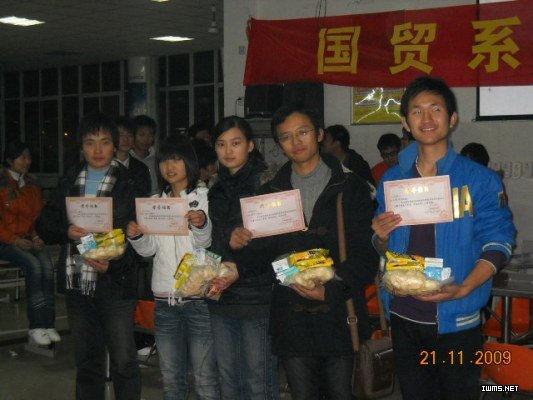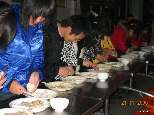 11月21日晚,国际贸易系在食堂二楼举办第三届包饺子大赛。此次大赛设立奖项:一等奖1名,二等奖3名,三等奖5名,最佳速度奖、最佳风度奖、最佳造型奖各一名。本次大赛以小组为单位,分包饺子和吃饺子两个环节进行;并在比赛过程中邀请文艺部表演文艺节目,最后的吃饺子环节将现场气氛调到最高潮。最终,队名为“WIN”的组合以两环节总分最高获得桂冠。