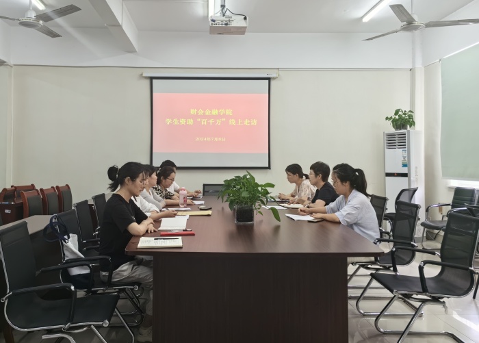7月8日下午,财会金融学院通过线上开展学生资助“百千万”走访活动。党总支书记胡宏萱、学生秘书、受访学生及辅导员老师参加走访座谈。