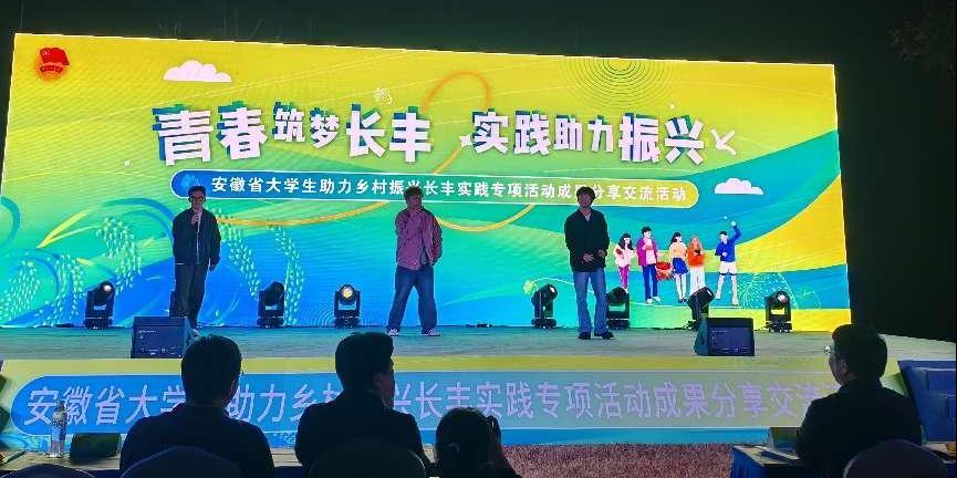 此次成果展示分享交流活动共有36所结对共建高校参与,我校财会金融学院“我为乡村绘风景”团队与长丰县杨庙镇、左店镇和双墩镇结对共建,荣获安徽省大学生助力乡村振兴长丰实践专项“优秀实践团队”。活动现场,沈丽萍向团省委书记陈明生介绍了项目团队“解乡愁、觅乡情、传乡音”公益服务内容。双方就“从绘乡村到绘思想、从人才进乡村到人才留乡村”等计划进行交谈。陈明生对团队乡村振兴服务给予了赞赏,对下一步的服务提升和创新给予了肯定。最后的颁奖仪式上,我校十佳歌手代表为大家献上了《最美的期待》《小镇姑娘》曲目,精彩的表演获得台下阵阵掌声。