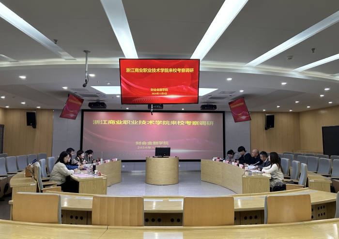 12月4日,浙江商业职业技术学院财会金融学院党总支书记胡叶茂、副院长肖欢明一行5人来校考察调研。教务处处长方春龙、财会金融学院党总支书记胡宏萱、副院长孙敬平和相关教研室负责人参加座谈交流。