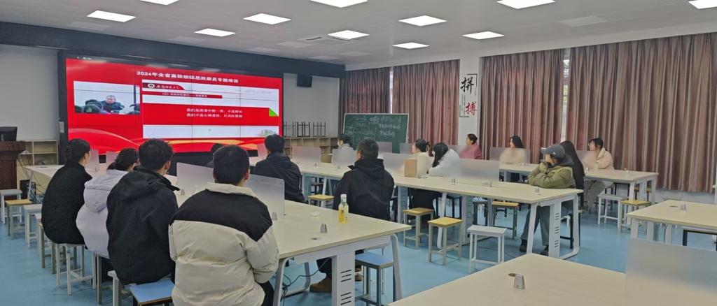 12月11日下午,由安徽省高等学校思想政治教育研究会主办的全省高校班级思政委员专题培训活动如期展开。我校翡翠、蜀山、和平三个校区所有班级的思政委员共200余人参加了线上培训。