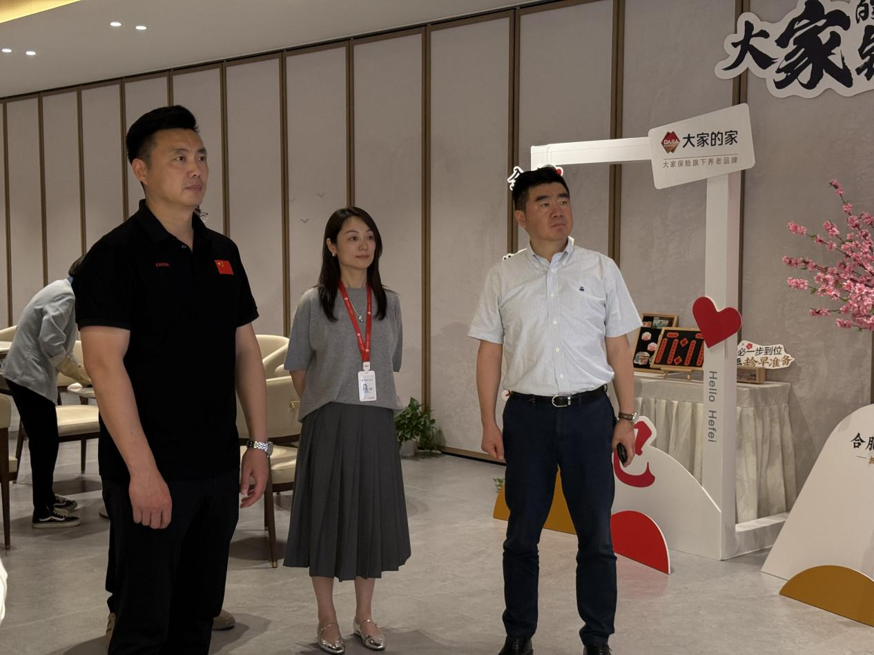 大家健康养老产业投资管理有限公司华东区域管理中心安徽区总经理左晓东热情接待王学峰一行,在相关负责人的带领下,参观了康养中心的居住环境及各个功能区域。在居住区,温馨舒适的房间布局、贴心的适老化设计体现着对老年人的关怀。参观过程中,工作人员详细介绍了养老院的运营模式、服务理念以及智慧养老技术的应用情况,分享了如何利用智能穿戴设备实时监测老人的健康状况,通过信息化管理系统提高服务效率和质量,直观展现了智慧健康养老的实际应用。