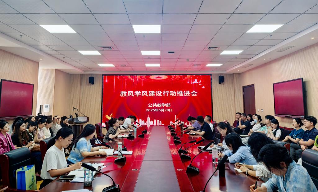 5月28日下午,公共教学部在行政楼308会议室召开教风学风建设行动推进会,公共教学部全体教职员工参会,会议由公共教学部党总支副书记宋凌云主持。