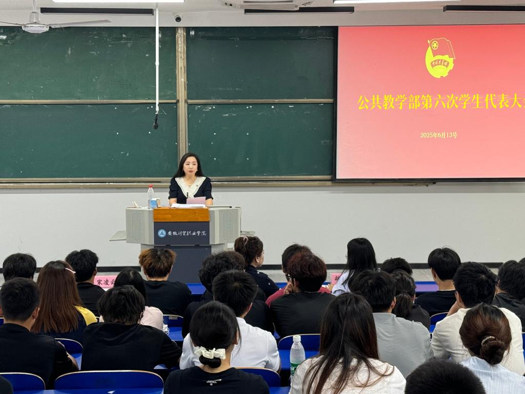 6月13日下午,公共教学部第六次学生代表大会在6103教室举行。学院党总支副书记宋凌云、副主任陈伟及团总支书记、专职组织员、全体专职辅导员、65名青年学生代表参会。