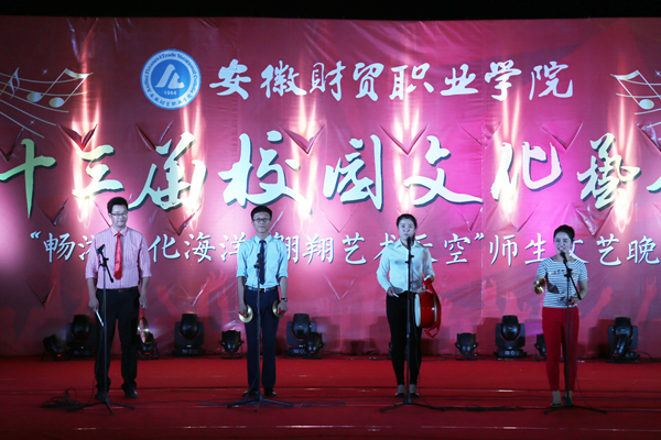 学院学生合唱团的合唱《当那一天来临》、《鸿雁》、《安财贸之歌》以及院舞蹈队舞蹈《欢天喜地安财贸》拉启了晚会的序幕;由教职工社团选送的《翡翠流年旗袍秀》节目中,教师们端庄儒雅的气质与大气优雅的传统服饰相得益彰,展示了我院教职工的风韵及中华服饰的文化内涵。书画展示《大美安财,翰墨飘香》,老师们屏息凝神、挥毫泼墨,书法字体、山水绘画相互交织,碰撞出书画艺术的灵光。师生合作《新安财三句半》为学院的发展献上了浓浓的祝福。越剧、黄梅戏串烧《红楼梦》、武术表演《武动青春》、歌曲串烧体现了我院学生丰富的才艺特长。舞蹈《西域风情》、《采薇》展现了青年学生朝气蓬勃的精神风貌。师生合唱《我们共同的家》,演绎出了优美的旋律和豪迈的情怀。舞蹈《算盘与键盘的穿越》、茶艺表演《香茗与舞蹈的邂逅》、礼仪操《酒店礼仪》、汉服齐诵《大学的精神》彰显了学院传承徽商文化、致力特色人才培养的办学理念。晚会在歌伴舞《长大后我就成了你》欢乐和谐的氛围中落下帷幕,现场三千余名师生共同度过了一个美好的夜晚。