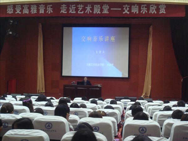 5月17日晚,300多名师生在学院报告厅聆听了一场交响乐欣赏专题报告。作为学院第十届校园文化艺术节活动之一,本场报告由学院教务处承办,安徽艺术职业学院冯新平副院长主讲。