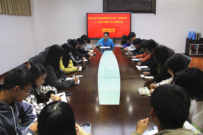 10月16日下午,学校团委组织团学干部开展习近平总书记提倡年轻人要“自找苦吃”学习交流活动。团委、学生会等30余名学生干部参加本次会议。