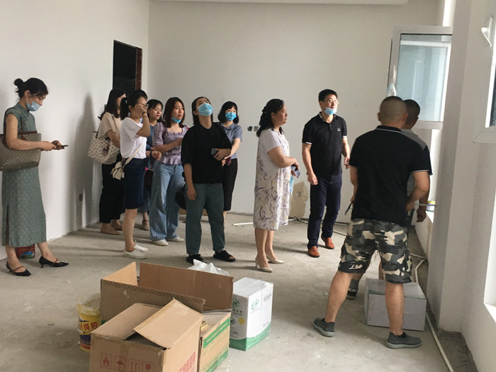 全体党员走入第二实训楼思政理论课实训的施工现场,了解实训室建设进度,想象了实训室建成后的模样。目前,马克思主义学院思想政治理论课实训室施工进度已经过半,框架格局已经搭建。党员老师们在探访的过程中也与施工方负责人进行了深入交流,强调了部分细节,并提醒施工方注意施工安全。