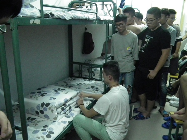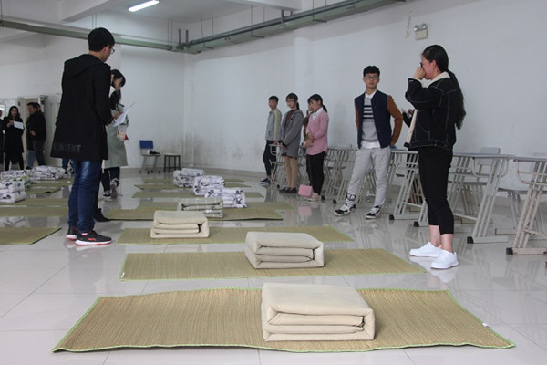 10月19日,宾虹艺术学院“我型我秀”叠军被比赛的决赛圆满结束。本次比赛以“优化生活环境,共建美好校园”为主题,通过各位同学叠军被的方式来提高宿舍生活的管理能力。宾虹艺术学院党总支副书记张伟、学生秘书王思、团学干事徐辉、教学秘书徐丹丹老师以及学生会主席团出席并担任评委。比赛刚开始就进入了紧张的气氛中,同学们专心致志,每个人都是严肃认真的表情,从而也体现出17级大一新生临危不惧的心态。时间一分一秒的过去,比赛渐渐的落下帷幕,评委进行着现场评分,并对参加比赛的同学一一作出点评。最终,动漫1702高明明同学拿下了第一名。