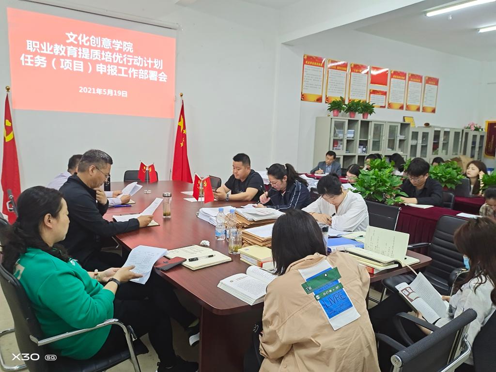 会后,文化创意学院两大专业群分别召开了教研室会议,进一步消化和落实提质培优全员行动计划任务(项目)实施方案和制定进度计划。(供稿:王帮红 审稿:郭湘如)