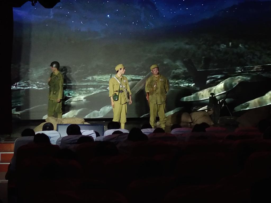 本场演出系安徽省2021年高雅艺术进校园活动的重要组成部分,由安徽大学戏剧学院戏剧系2018级表演班全体同学出演。话剧的主人公是一群正值青春年华的大三在校生,他们拥有优渥的物质生活条件,却由于信仰的缺失而陷于精神迷茫,一段“战争”的回忆将他们拉回到70年前。在那里,有一群与他们年龄相仿的年轻人,为了保家卫国,奉献了自己的青春乃至宝贵的生命。战争的残酷与血腥,使同学们深刻认识到信仰与责任可以突破对死亡的恐惧,并发出耀眼的光芒。