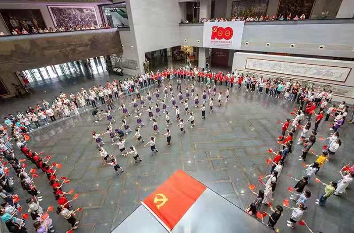 为庆祝中国共产党成立100周年,加强学生爱国主义教育,赓续红色精神,6月26日上午,财会金融学院学生党支部走进安徽省博物院,参加省博物院“唱支山歌给党听”快闪活动,参观“安徽文明史陈列”等专题展厅。财会金融学院党总支书记胡宏萱、学生党支部书记李健、学生党支部部分师生党员和200余名入党积极分子参加活动。