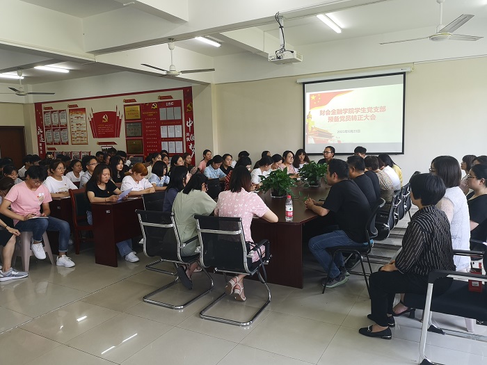 6月23日下午,财会金融学院学生党支部于综合楼312办公室召开学生预备党员转正大会,会议由党支部书记李健主持。财会金融学院领导党总支书记胡宏萱、纪检委员宋鹤年等师生党员出席了本次大会。