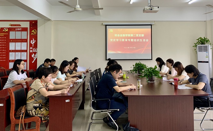 7月29日上午,财会金融学院教师第二党支部在综合楼312办公室召开党史学习教育专题组织生活会,会议由党支部书记查静主持。财会金融学院党总支书记胡宏萱参加会议。