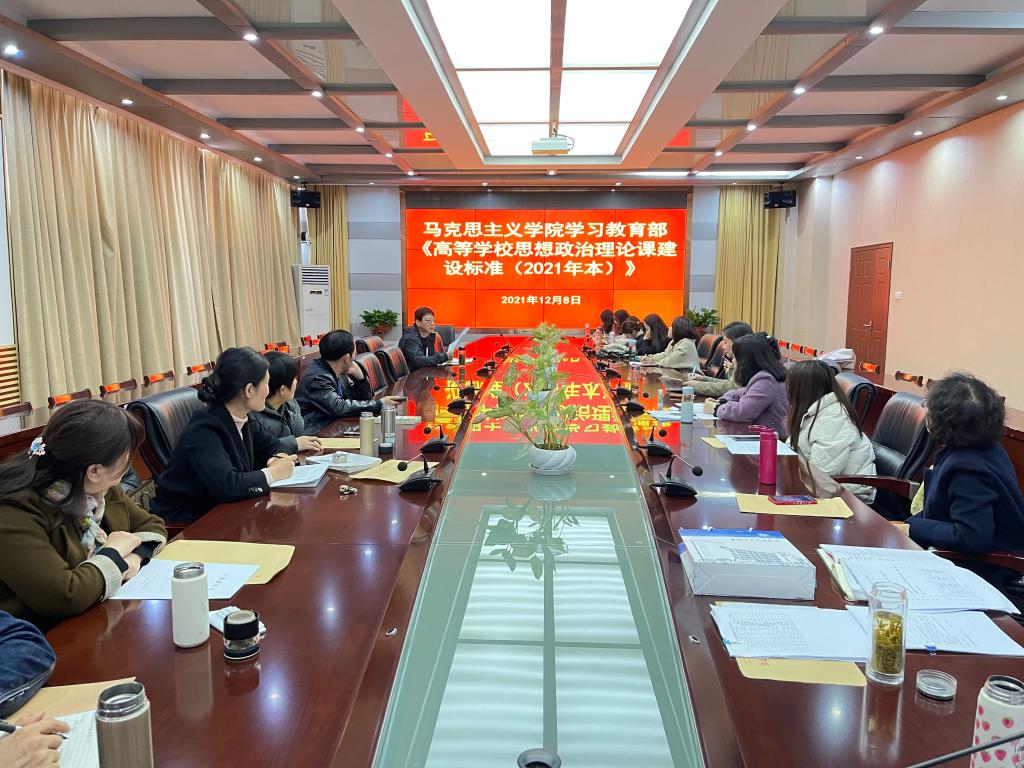 为进一步加强高校思想政治理论课的宏观指导,规范组织管理、教学管理、队伍管理和学科建设,教育部对2015年颁布的《高等学校思想政治理论课建设标准(暂行)》进行了修订。为贯彻文件精神,切实推进学校思想政治理论课的与时俱进建设和发展,马克思主义学院于12月8日下午召开了学习教育部《高等学校思想政治理论课建设标准(2021年本)》的会议,学院全体教职工参加了会议。