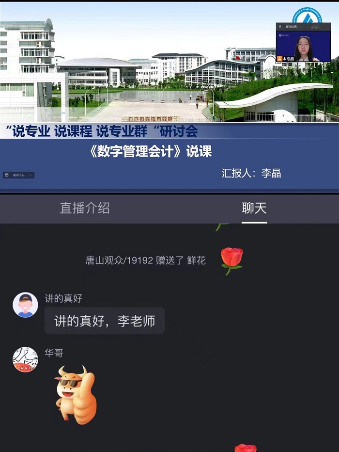我校财会金融学院李晶老师参加数字财经“说专业,说课程,说专业群”研讨会:说课程汇报,汇报主题是《数字管理会计》课程说课,主要从课程分析,课程设计,教学团队和课程特色与成效四个方面,将传统课程结合大数据新技术对课程升级改造,以岗课赛证综合育人培养模式提升课程高度,适应课程改革新要求。李晶老师的汇报得到与会教师的好评,点评专家对汇报的课程设计也给予肯定。课程汇报充分体现了会计专业与新技术的融合,结合新业态培养大数据+财务的复合型人才。