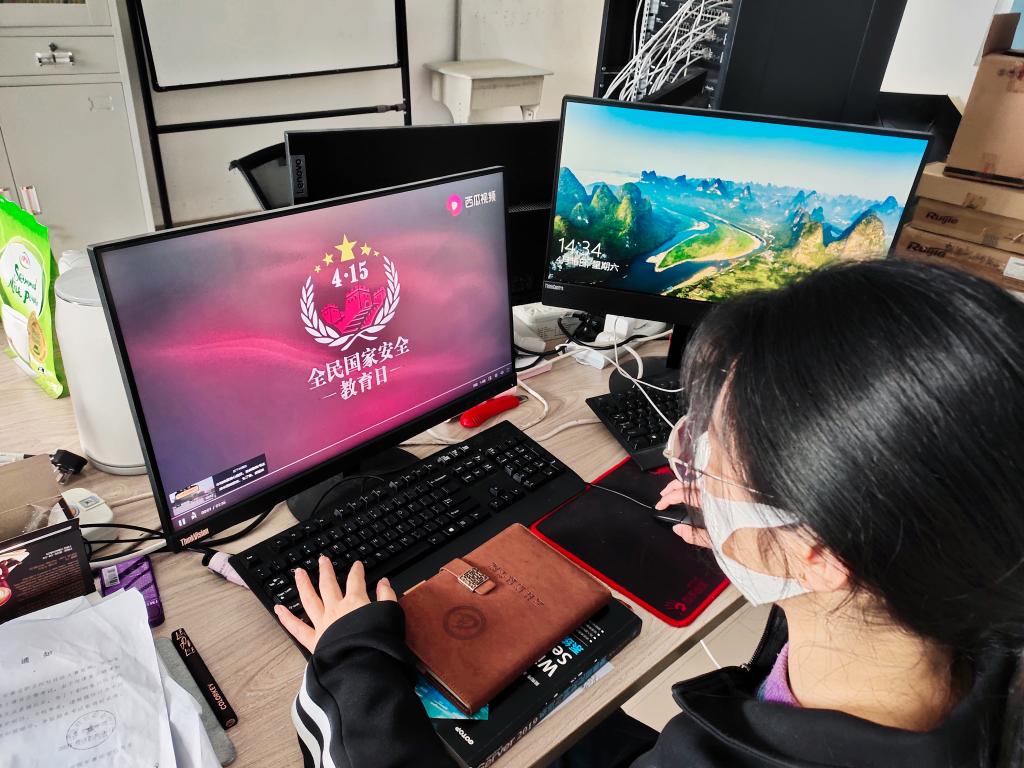 15日晚,以“护航之道”为主题的全民国家安全教育日特别节目在田径场的大荧幕上进行播放。中华人民共和国成立以来,党中央对发展和安全高度重视,始终把维护国家安全工作紧紧抓在手上。通过观看教育视频,让安全教育深入青年学生心中。