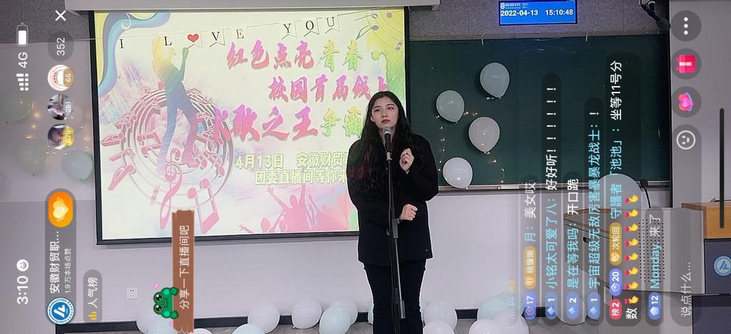 此次云K歌大赛为广大同学提供了展现自我风采的舞台,传递出安财院学子的青春力量,用动人的旋律诠释当代大学生的活力与梦想。(供稿:蔡依倩 审稿:左艳琼)