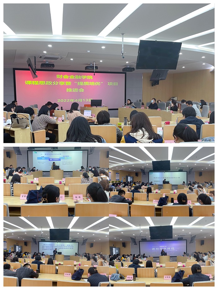 4名课程团队代表进行了经验分享。谢梅花老师讲授了《企业财务会计》课程思政融入教学设计;宫情情老师带来了《税务会计》课程思政案例分享;杨伟老师基于《审计实务》课程,以审计报告为例作课程思政分享;潘睿老师讲授了《保险实务》在课程思政中的案例分享。