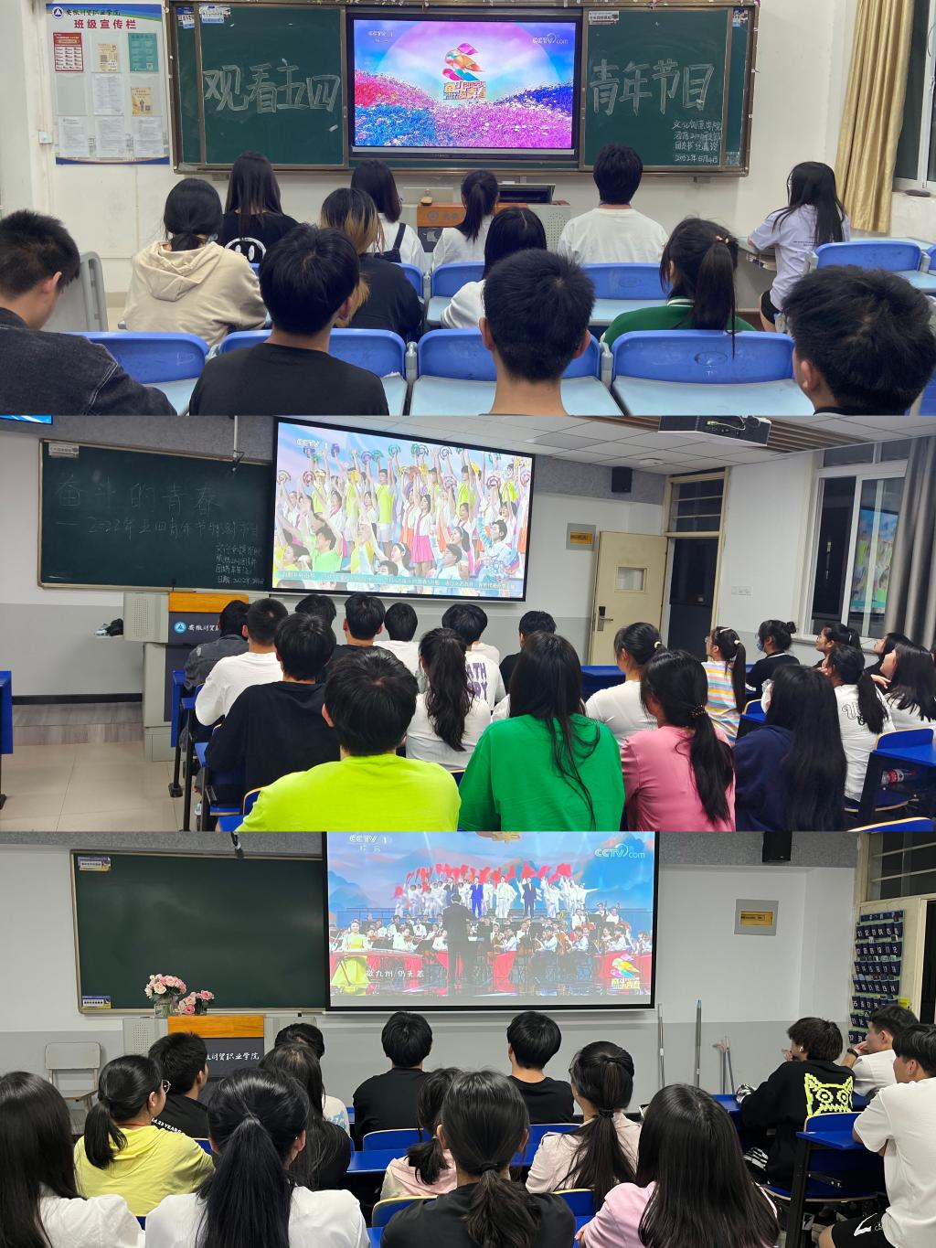 5月4日晚,各班团支部组织观看了央视五四青年节特别节目《奋斗的青春》,晚会聚焦优秀学生代表、五四奖章获得者、优秀共青团员、冬奥冠军、感动中国人物、青年航空航天工作者以及青年演员代表,通过各行各业的青春榜样,分享感人故事,通过勇敢、拼搏、团结、奉献等青春关键词彰显精神力量。
