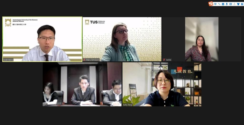 6月2日下午,教务处连线海外合作院校爱尔兰香农理工大学国际部,双方开展线上交流会。教务处副处长张晓峰与教务处国际教育科老师、爱尔兰香农理工大学国际项目部主任玛丽•辛普森(Mary Simpson)女士、亚洲区总监孟晶、安徽代表处的负责人参加了会议。