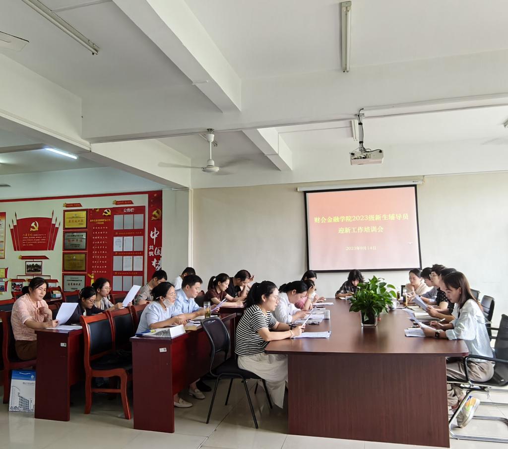 9月14日中午,财会金融学院召开2023级新生辅导员迎新工作专题培训会。党总支书记胡宏萱、副书记李健、团总支书记沈丽萍、学生秘书、翡翠校区及和平校区全体新生班级辅导员参加。