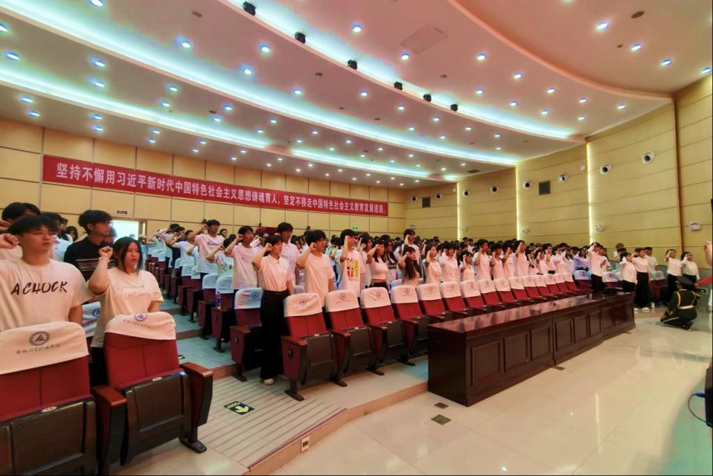 6月25日中午,beat365在线唯一官网在学术报告厅举行新团员入团仪式,旨在深入贯彻习近平总书记关于青年工作的重要思想,加强学校共青团队伍建设。学生处处长廖步岩、团委全体成员、各二级院部团总支书记、团干及团学干部代表等参加活动。