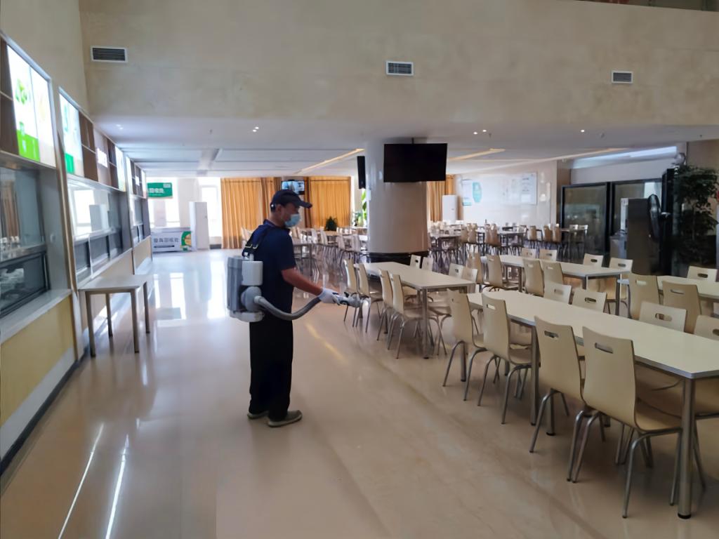 本次消杀工作中,采用“全覆盖、无死角”的作业模式。工作人员背着装满消杀药剂的喷雾器,手持专业设备,对校园内的教室、宿舍、食堂、卫生间、走廊、楼梯扶手等公共区域,以及绿化带、垃圾桶周边、下水道等蚊虫易滋生的重点部位,进行了细致入微的喷洒消毒。此外,消杀工作人员还对校园内所有灭鼠毒饵站鼠药进行更换,灭蝇、灭蚊笼投放诱饵,从而降低校园内病媒生物密度。