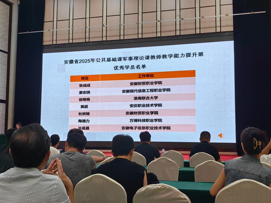 8月23日,安徽省教育厅主办的“职业院校教师素质提高计划国家级培训”军事理论课教师教学能力提升项目圆满结束。马克思主义学院杜娇锦、张成成两位教师在培训中表现优异,双双荣获“优秀学员”称号。