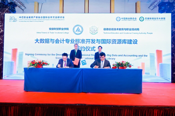会上,王海龙代表学校与巴基斯坦信德省技术教育与职业培训局签署了大数据与会计专业标准开发与国际资源库建设协议,双方将在标准共建、资源平台搭建、数字化教学资源开发等方面开展深度合作,提升巴方的技术应用与教学实施能力,实现中国职教标准国际化适配与优质资源的高效输出。