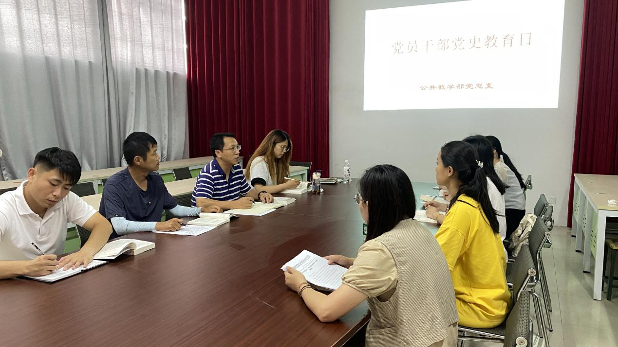 7月19日下午,公共教学部党总支开展了“党史故事诵读分享”活动,活动由学生党支部书记张玥晨主持,活动紧紧围绕“学党史、悟思想、办实事、开新局”的要求,以“忆百年党史、奋进新征程、永远跟党走”为主题,以学习党史为主要内容,普及党史知识,推动党史学习教育。