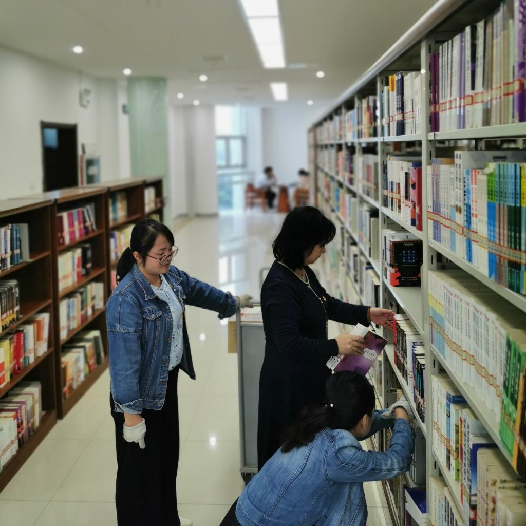 在三楼文艺书库,全体党员同志有序分工,先将在架的乱序图书下架,再按中图分类法的正确顺序重新上架,提高了图书摆放顺序的准确性,方便读者准确快速找到想要借阅的图书,保证图书馆随时为读者提供高效优质的服务。由于今年书库装修和扩充调整,原有和新增书库的排序、倒架、新书上架任务都十分繁重,王永平率领全体党员,从暑假前开始,数次协助书库开展图书整理、排序、上架、倒架的活动,这些都是共产党员在图书馆攻坚克难工作中发挥先锋模范作用的重要体现,增强了党支部的凝聚力、战斗力和向心力,推动了党史学习教育内化于心、外化于行,引导广大党员干部在实践活动中学党史、担使命、践初心、办实事。