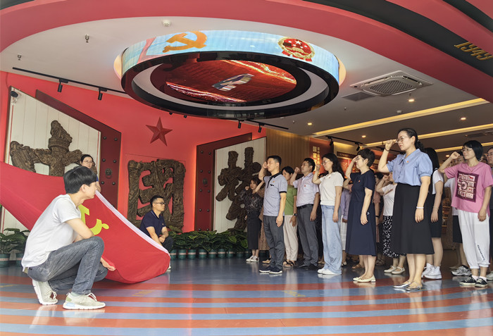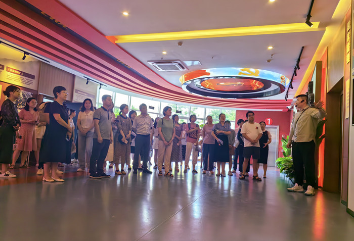 党员老师们在马克思主义学院老师的带领下,参观了爱国馆、社会主义教育馆、党史学习教育馆,以爱国主义为核心内容,通过爱国、爱党、爱社会主义三个主题展开。多媒体、数控模拟场景让大家身临其境,从国家富强、民族振兴到人民幸福,结合社会主义的理论发展和实践发展,让大家看到了中国式现代化的历史演进之路;通过中共一大、南昌起义、抗美援朝、18个红手印等场景,深切感受中国共产党走过的光辉历程。参观学习后,全体党员在爱国馆重温入党誓词,声音铿锵有力,响彻整个场馆。