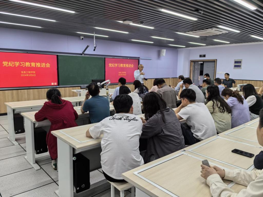按照《beat365在线唯一官网党纪学习教育工作方案》要求,信息工程学院党总支于5月8日下午召开党纪学习教育推进会,全体教职工参加会议。