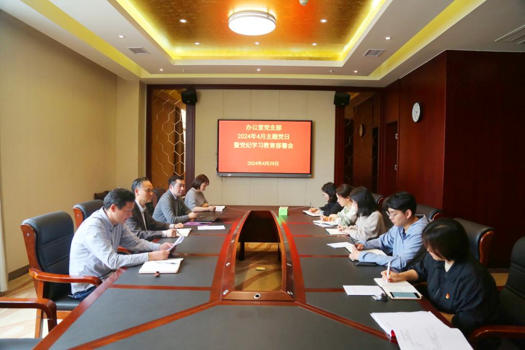 4月29日下午,办公室党支部在行政楼203会议室召开主题党日暨党纪学习教育部署会。