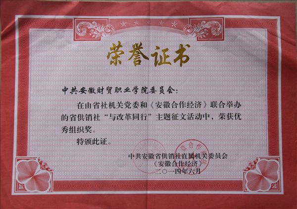 日前,省供销社对上半年组织的“与改革同行”主题征文进行了通报表彰。学院王学峰等同志获奖,学院获优秀组织奖。