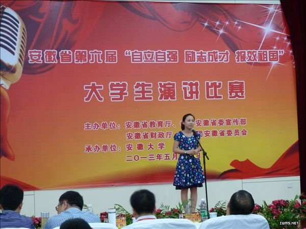 5月12日,由省教育厅、省委宣传部、省财政厅、共青团省委共同主办的第六届“自立自强、励志成才、报效祖国”大学生演讲比赛决赛在安徽大学馨苑校区隆重举行,本科、高职(专科)分组同时进行。经过合肥、皖南、皖北三个片区的半决赛,高职(专科)组共有38组选手入围决赛,我院选送的两位选手分别捧回一等奖和二等奖。