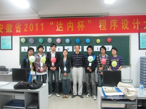 本次大赛由安徽省高等学校计算机教育研究会主办,采用ACM/ICPC(国际大学生程序设计竞赛)竞赛模式,3人组队,共同解题,比赛时间5个小时。来自全省24所高校的51支队伍(本科41支,高职高专10支)参加了本次比赛。我院选派了两支队伍参加了比赛,软件1001班陈大伟、软件0902班杨世文和软件1002班王子洋等三位同学组成安财贸一队;软件0902班李庆忠、信息1002班黄春雨和金磊等三位同学组成安财贸二队; 6名同学在历时5个小时的比赛中顽强拼搏,充分发挥团队协作精神,最终不负重望,总成绩位列第二、三位,包揽了二等奖。