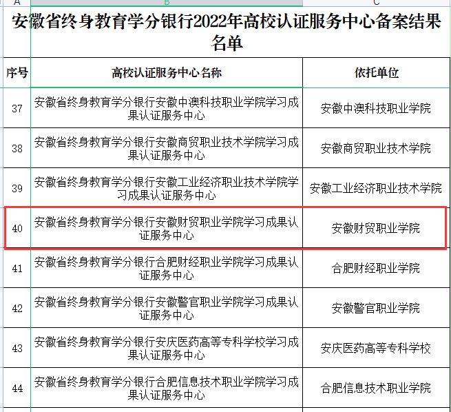近日,安徽省教育厅公布2022年安徽省终身教育学分银行认证服务中心备案结果,我校获批成为安徽省首批终身教育学分银行高校学习成果认证服务中心。