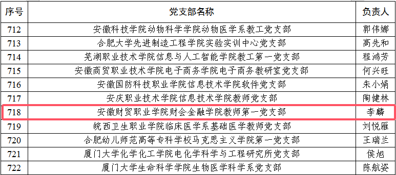 近日,教育部思想政治工作司公布了《关于全国高校“双带头人”教师党支部书记“强国行”专项行动团队名单的公示》,我校财会金融学院教师第一党支部成功入选。