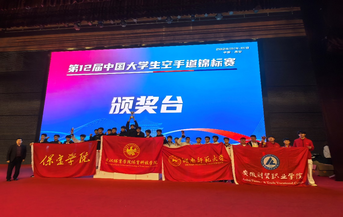 11月8日,第12届中国大学生空手道锦标赛在古都西安圆满落幕。刘飞龙、李俊豪、罗战、姚江涛、张家磊5名运动员代表学校参与6个项目的比拼,共斩获1枚金牌、3枚铜牌和2个第五名的好成绩。