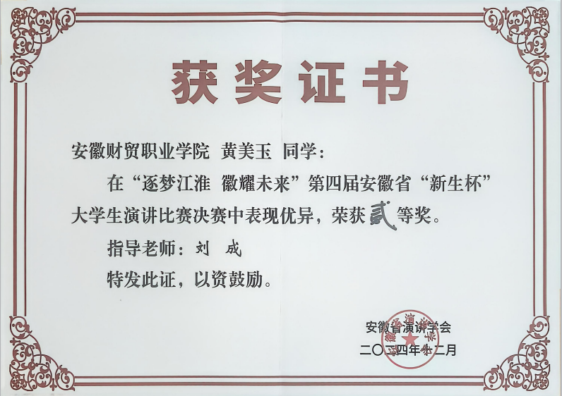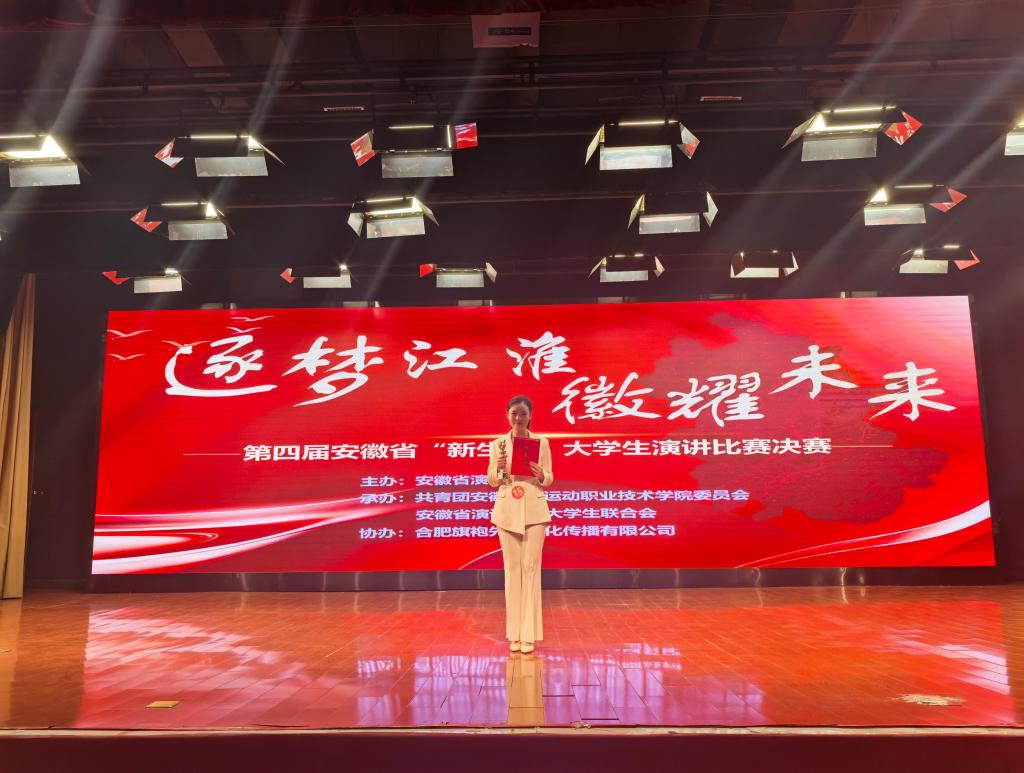 12月14日,逐梦江淮,辉耀未来——安徽省第四届“新生杯”演讲比赛决赛在安徽体育运动职业技术学院举办。经济贸易学院的传播与策划专业黄美玉同学荣获二等奖。