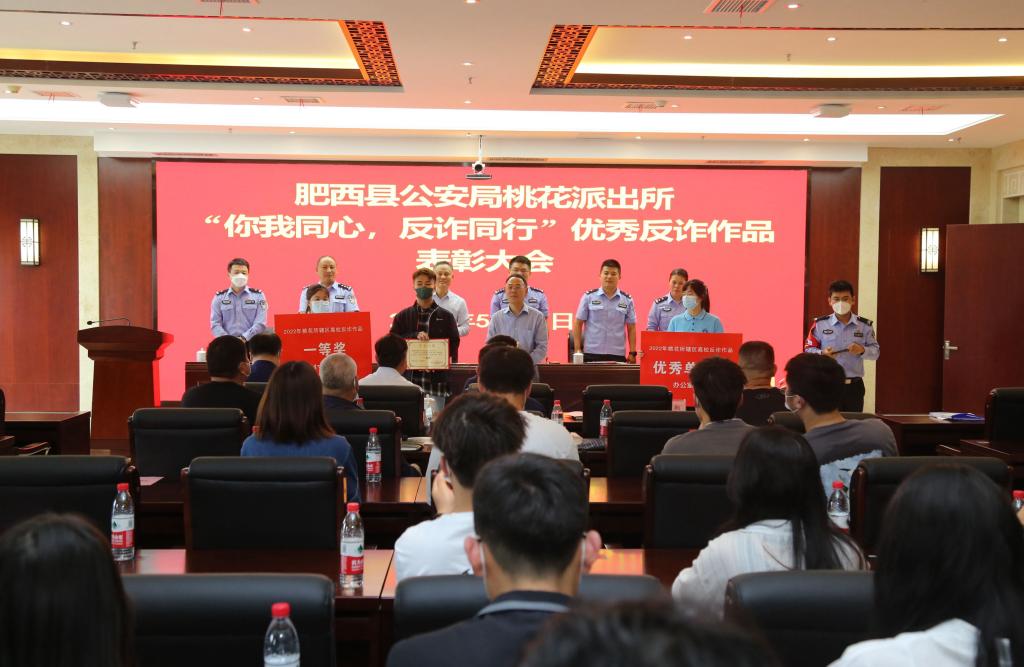 会议通报了“你我同心 反诈同行”校园春季反诈作品征集活动开展情况,宣读了优秀作品获奖名单,并为肥西县桃花镇辖区5所高校获奖者颁发了荣誉证书与奖品。我校获各类作品奖项17个及优秀单位奖。