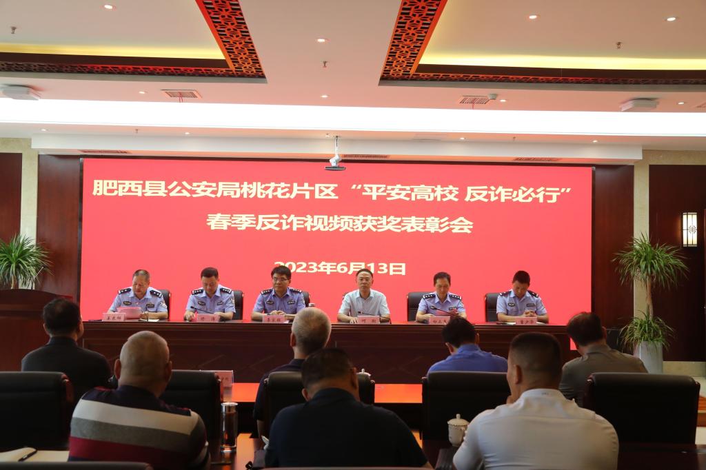 6月13日下午,肥西县公安局桃花片区“平安高校 反诈必行”春季反诈视频大赛颁奖仪式在我校行政楼311会议室举行。学校党委副书记、副校长何翔,合肥市公安局刑警支队五大队大队长修涛、教导员白卫东,肥西县公安局党委委员、副局长李家旺出席。