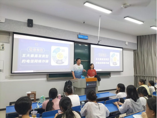 为进一步提升校园电信网络诈骗防范工作质效,积极创建“无诈院部”“无诈班级”“无诈寝室”活动,切实提升学生的防骗意识和识骗能力,公共教学部于9月19日晚为大一新生送上了大学的“防电诈第一课”。