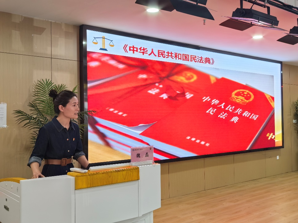 魏磊首先回顾了民法典的诞生历程,从立法背景、制定过程到实施意义,为听众们描绘了一部波澜壮阔的法治史诗,并结合具体案例,与现场师生进行积极互动,深入浅出地讲解了民法典的适用原则和条款规定,使抽象的法条变得生动而具体。特别是对一些典型条文进行了详细解读,让师生们深刻感受到了民法典对于保障人民权益的重要意义。讲座现场,师生们就讲座中的典型法律问题与主讲人进行积极沟通,进一步加深了大家对民法典内容与精神的理解和认识,现场气氛热烈,反响强烈,展示了师生们对法治教育的热情和支持。