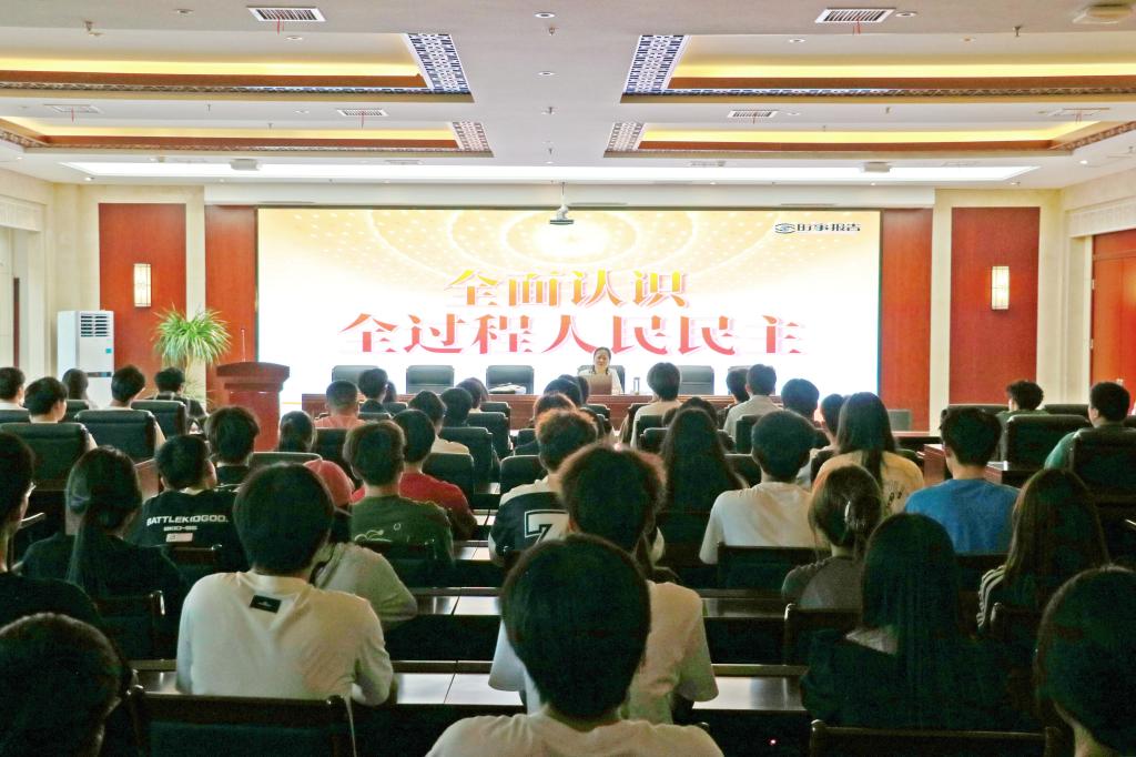 学校党委委员、纪委书记罗虹以“全面认识全过程人民民主”为主题,结合党的二十大精神、全国两会精神和学院工作实际,让学生充分认识到,全过程人民民主是党领导人民“穿合脚的鞋”、走自己的路探索出来的结果,是中国式民主长期发展、不断完善、内生性演化的产物,合乎我国国情、适应时代要求、体现人民意志,是最广泛、最真实、最管用的社会主义民主。