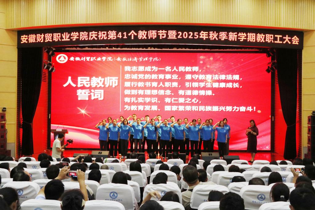 9月10日,学校召开庆祝第41个教师节暨2025年秋季学期教职工大会。省社一级巡视员魏邦余,学校领导张志祥、吴成颂、何翔、胡戴新、罗虹出席会议。全体教职工分别在图书馆报告厅主会场及其他三个分会场参加会议。