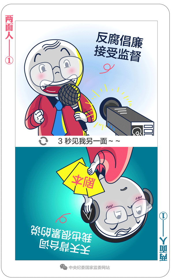 习近平总书记多次强调:“坚决反对搞两面派、做两面人。”大量案件表明,党内有一些人在这方面问题很突出。我们要给政治上蜕变的两面人画个像,摆摆他们的一些表现。今天推出第一期:“有的修身不真修、信仰不真信,很会伪装,喜欢表演作秀,表里不一、欺上瞒下,说一套、做一套,台上一套、台下一套,当面一套、背后一套,手腕高得很。”